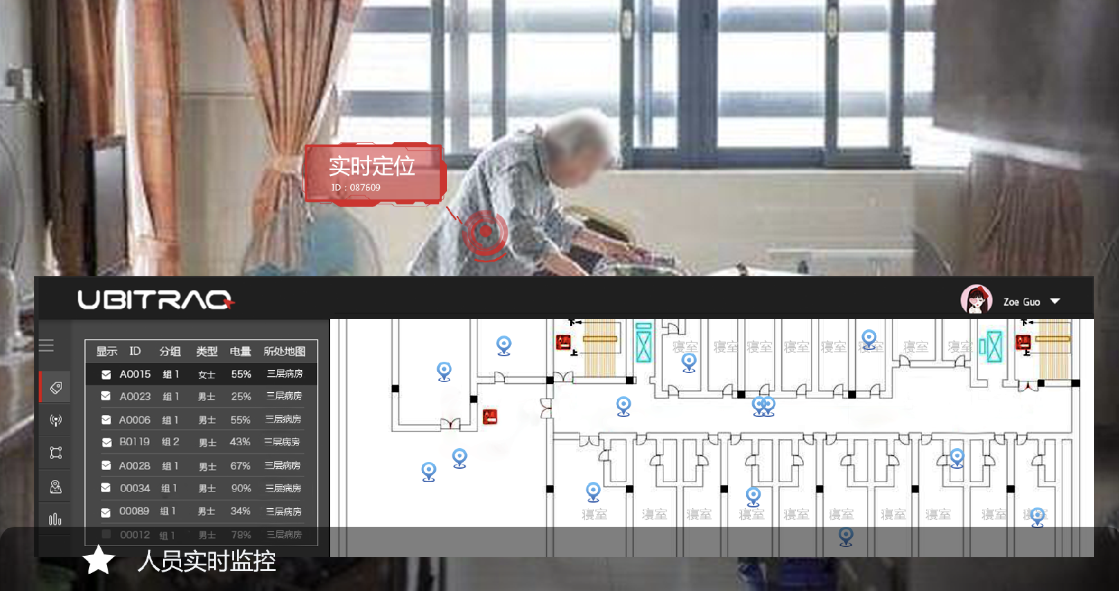全跡科技養老行業高精度定位管理系統使用UWB室內定位技術,通過在被看護人身上佩戴定位標簽,與養老院內安裝的定位基站無線連接,實現對被看護人的精準定位。管理人員可設定電子圍欄,被監護人在離開規定區域或超出時間,后臺會觸發警報。老人在發生意外時可以通過緊急求救按鈕向管理人員發出求救信號,管理人員可及時得到老人求救信息和準確位置,進行緊急救助。同時手環型定位標簽可以遠程監控老人心率、血氧、脈搏、血氧指標等功能。